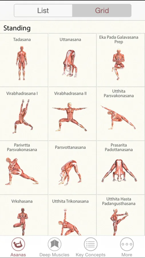 Some of the concepts discussed include: “Foundation”, “How long to stay in Asanas?”, “Flexibility vs. Range of Motion”, “Synergy”, as well as “Safety” and much more. A dedicated section of the app deals with deep muscles such as the Iliopsoas and the Rhomboids.