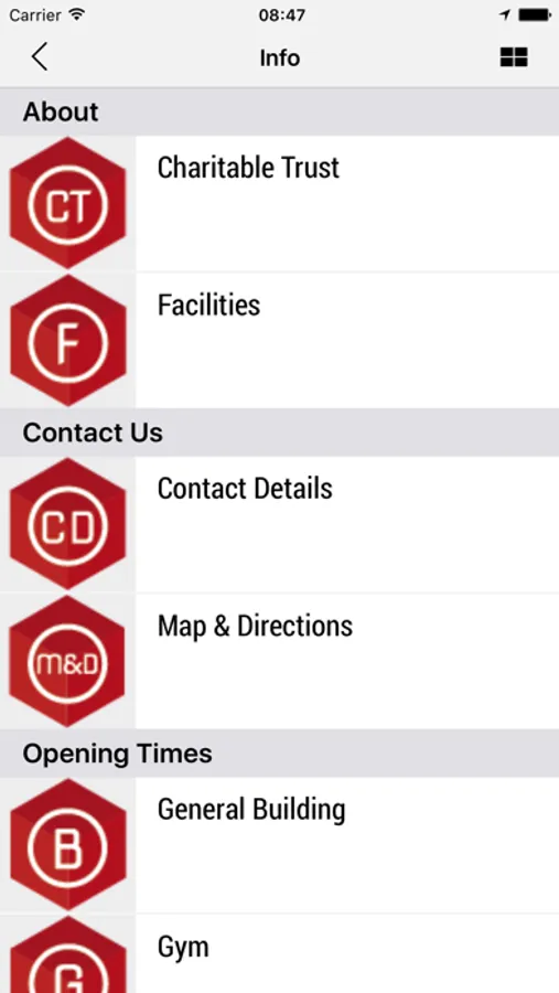 Information such as opening times, facilities, charitable trust and room hire are always available in the app and can be easily e-mailed to friends.