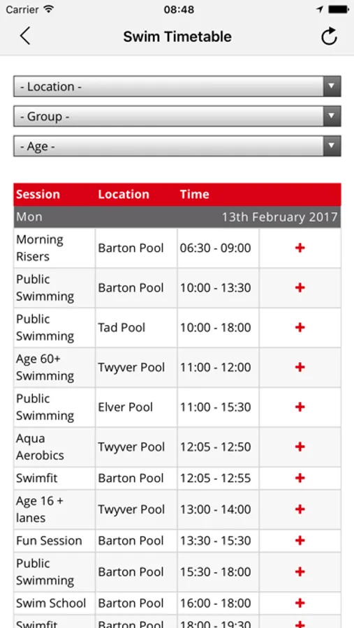 Get real-time access to your centre’s timetable for swim sessions, including times, pool and where relevant, a class description.