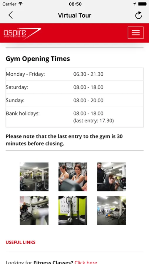 Access the aspire online booking portal via the app (please note the portal is web-based so may not display in the best format for your mobile).