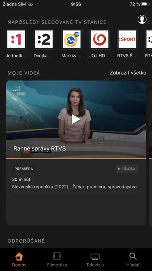 - personalizovanú sekciu Domov, ktorá obsahuje napríklad Moje videá či naposledy sledované TV stanice.