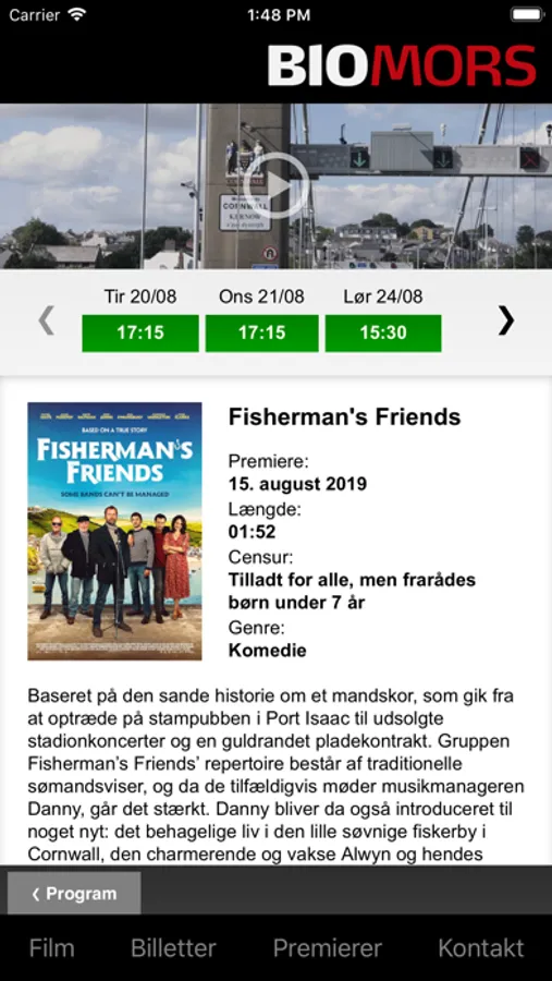 Med denne app har du mulighed for at gennemse programmet for Bio Mors, samt se yderligere filminformationer som trailer, censur, medvirkende skuespillere, varighed m.m.
