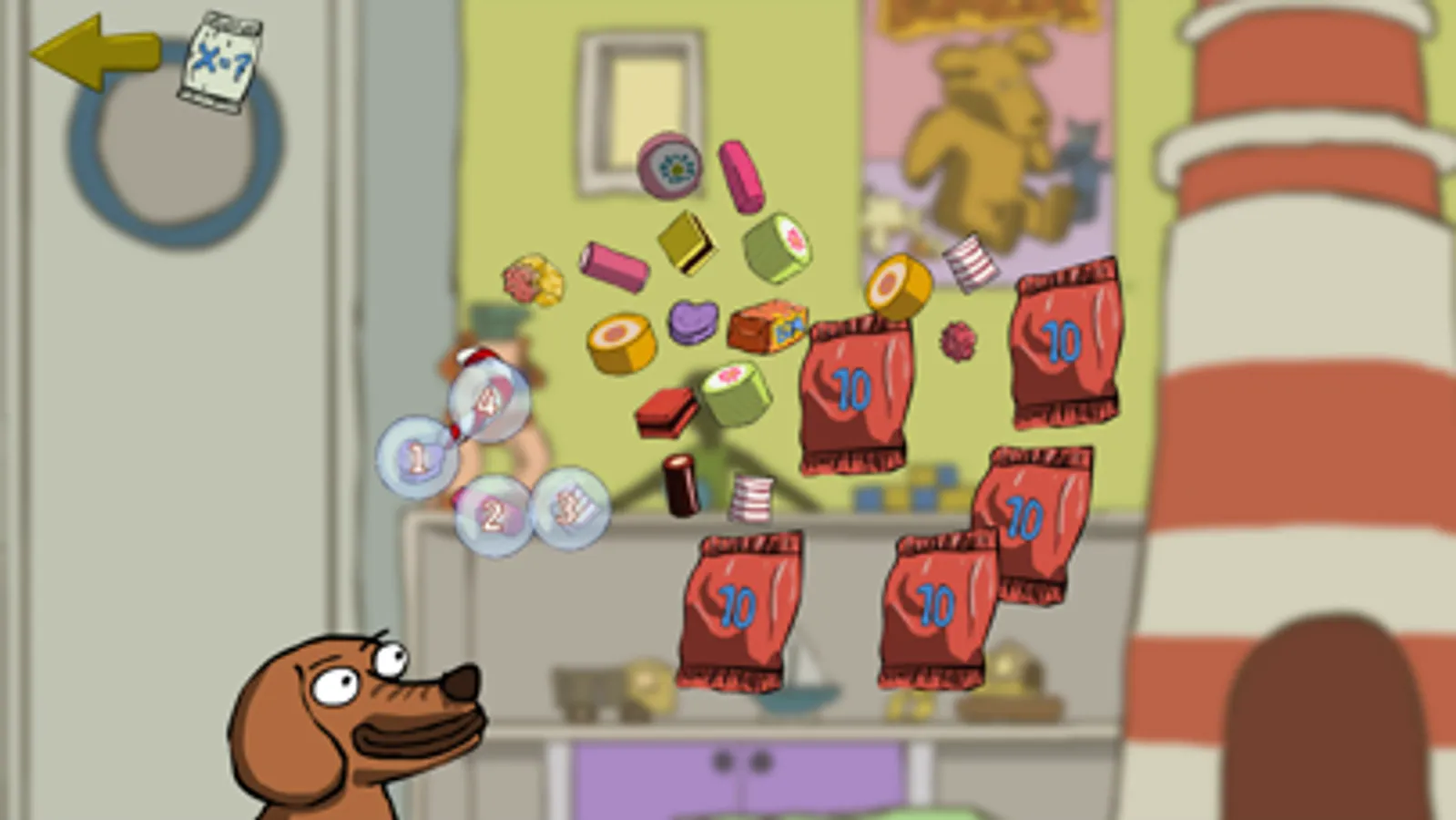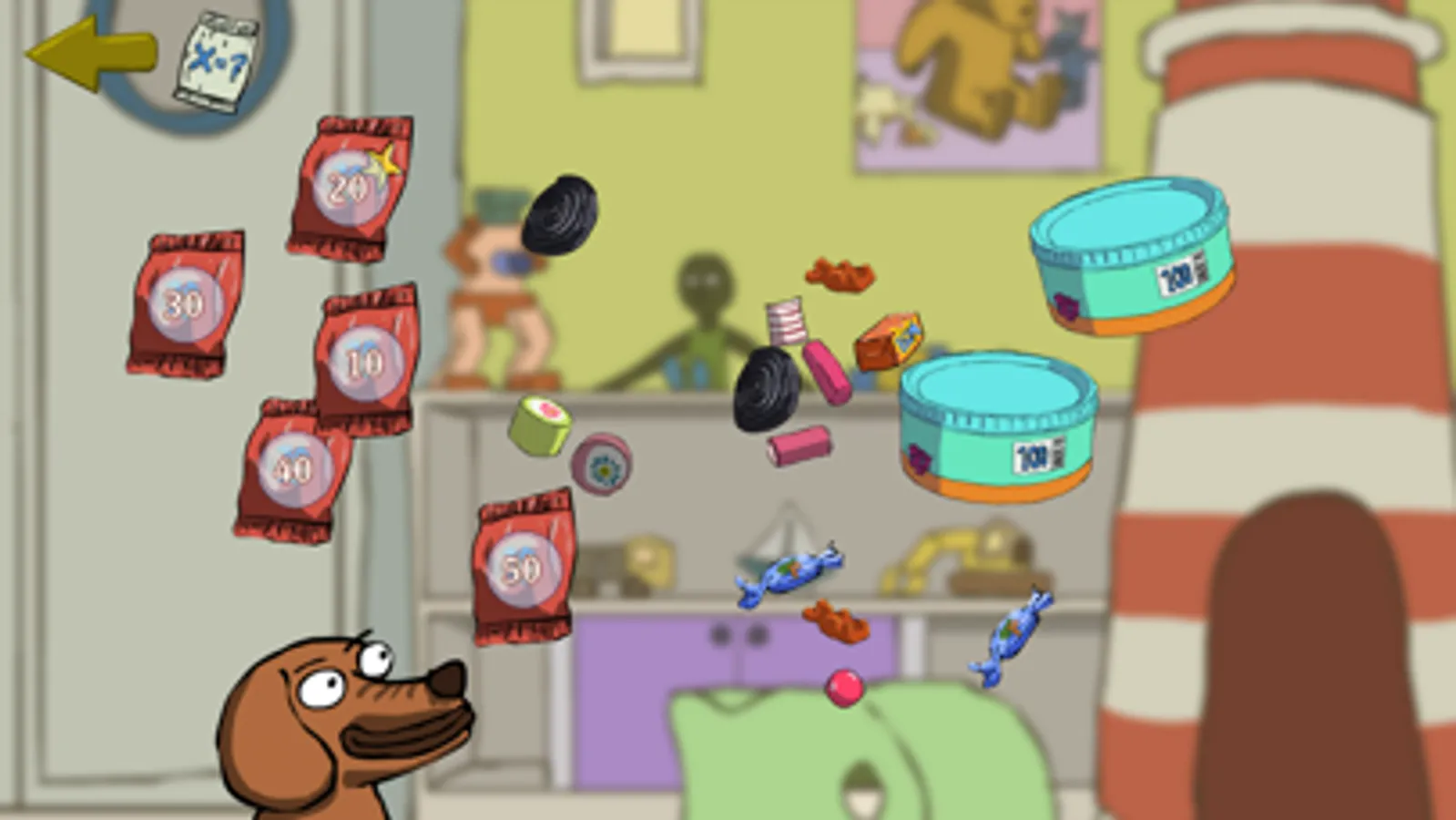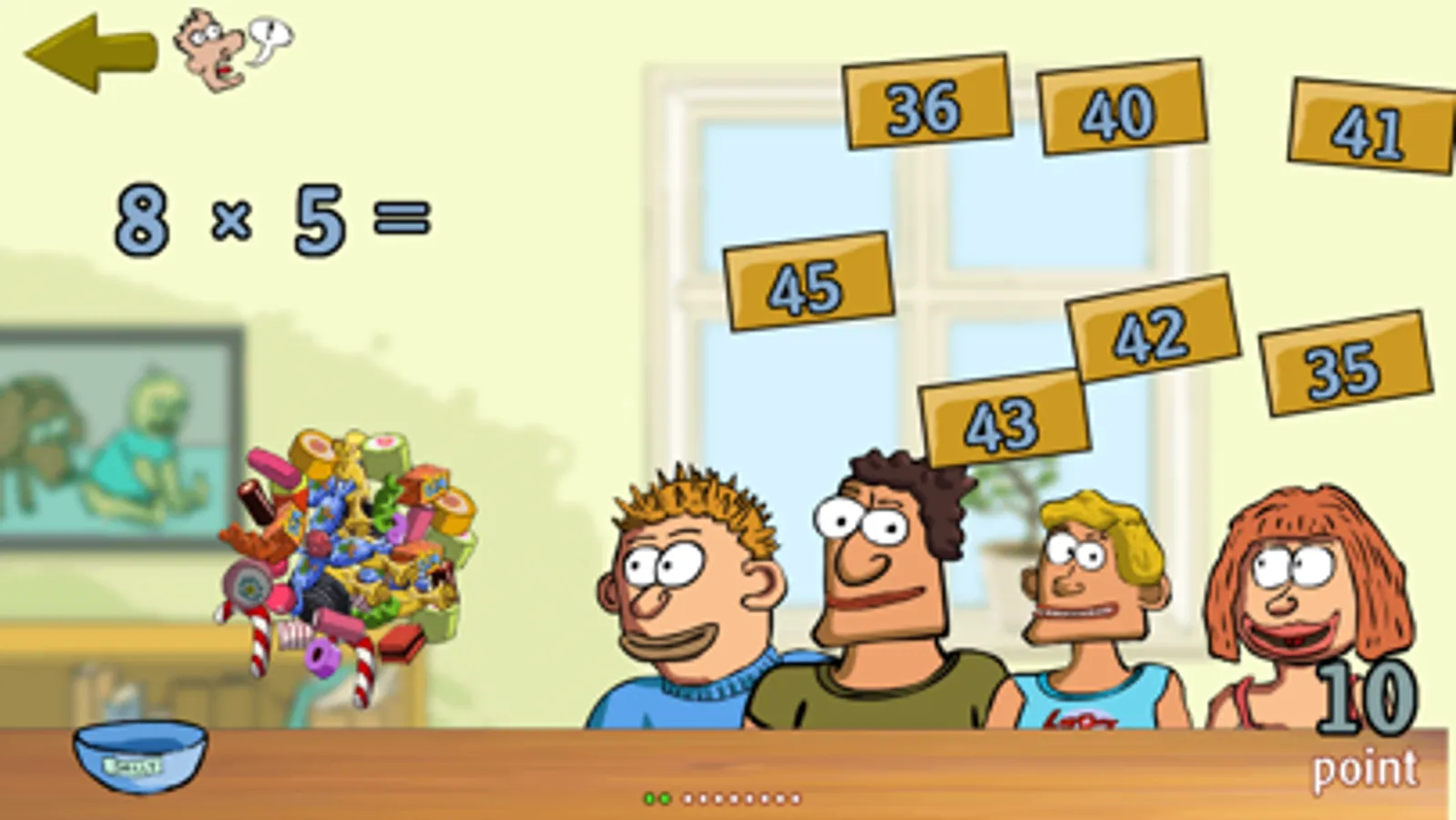 Matemaslik er et herligt og fjollet matematikspil for børn og barnlige tal- og slikelskere. Du kan tælle slik, regne ud hvor mange stykker der er, og se fjollede figurer spise slik til de får sukkerchok.