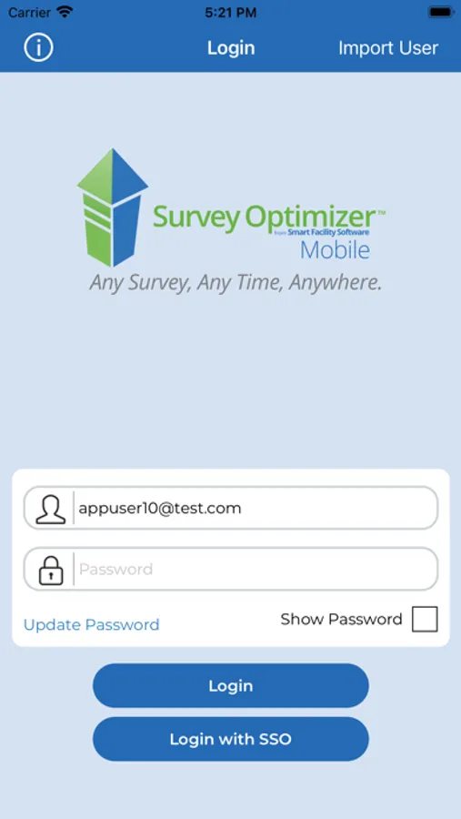 Survey Optimizer Mobile is an optional app that enhances the Survey Optimizer web application. The app allows users of www.pocketsurveytool.com to conduct surveys using the IPhone, ITouch and IPad technology. The user may create any survey they wish on the web app and assign it to anyone whom is a registered user. When the user logs in and syncs, the assigned survey templates appear in the App where the user may conduct surveys at will. When completed, the user then syncs back the results to the web app for reporting.