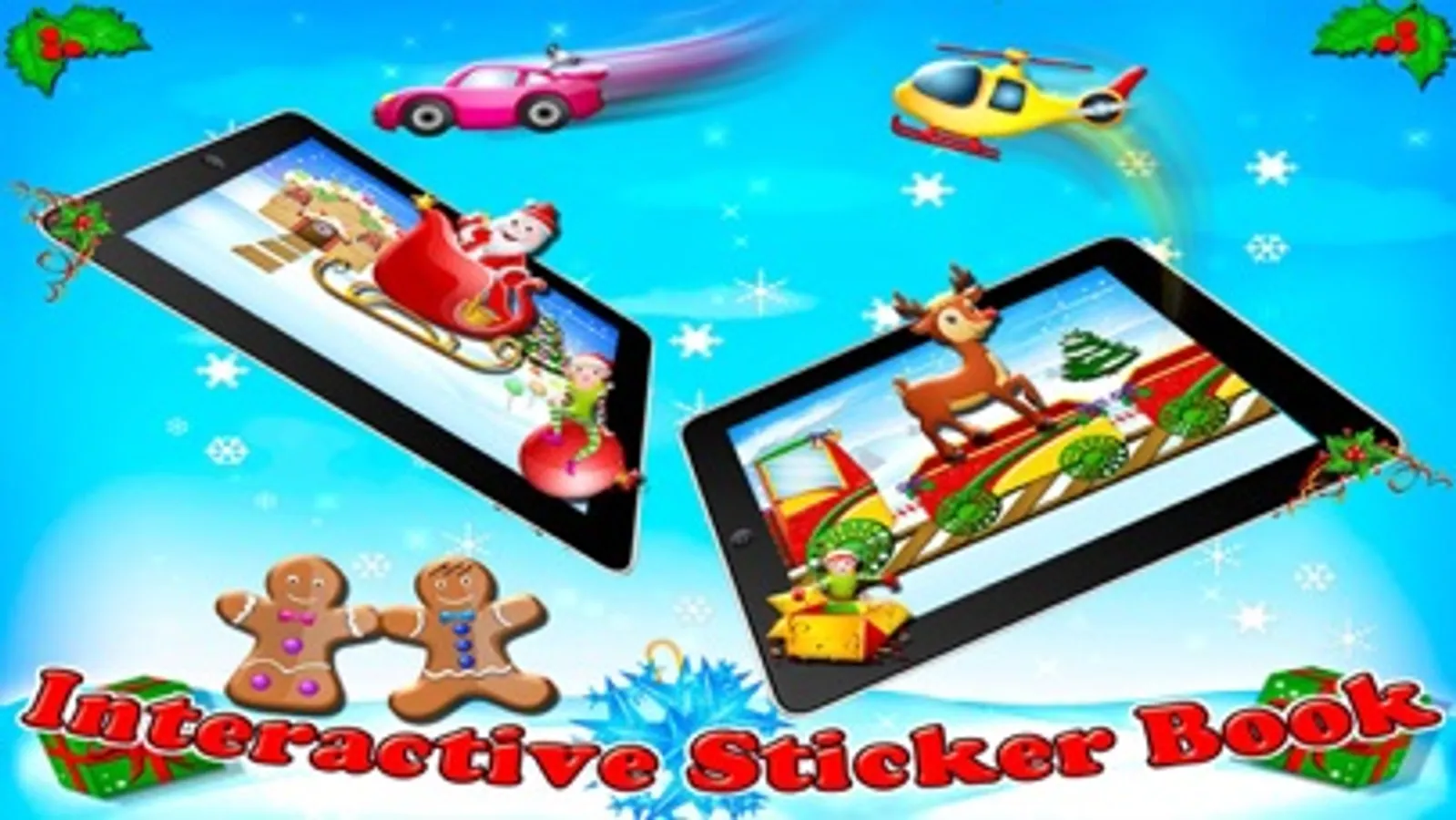 Interact with the HD illustrated Christmas items and characters on screen while you finger paint with colors and fill area with paint buckets. Find 70+ stickers at the upper and lower bars, add as many as you like.