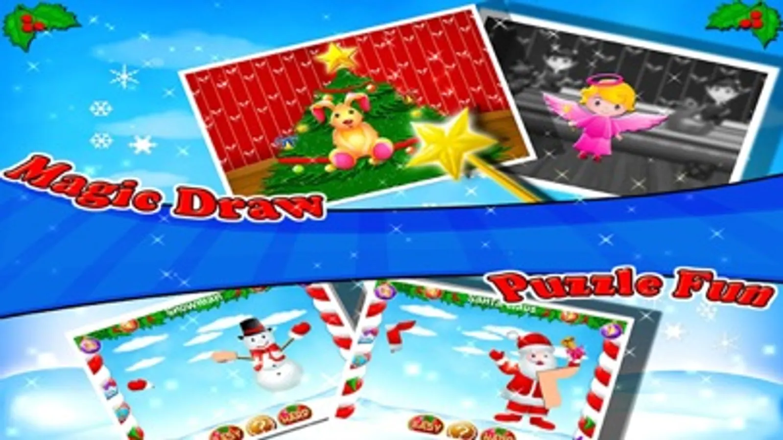 Welcome the Christmas spirit into your house with this magical app filled with 7 holiday spirit games inside. Help Santa deliver presents in Santa Run game, color beautiful holiday paintings and mix up the Christmas characters in the Mix and Match game.
