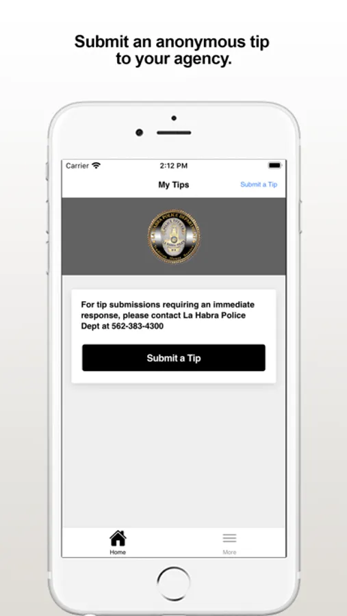 The LHPD Tips app provides citizens the ability to submit anonymous tips to the La Habra Police Department. Key Features Include: