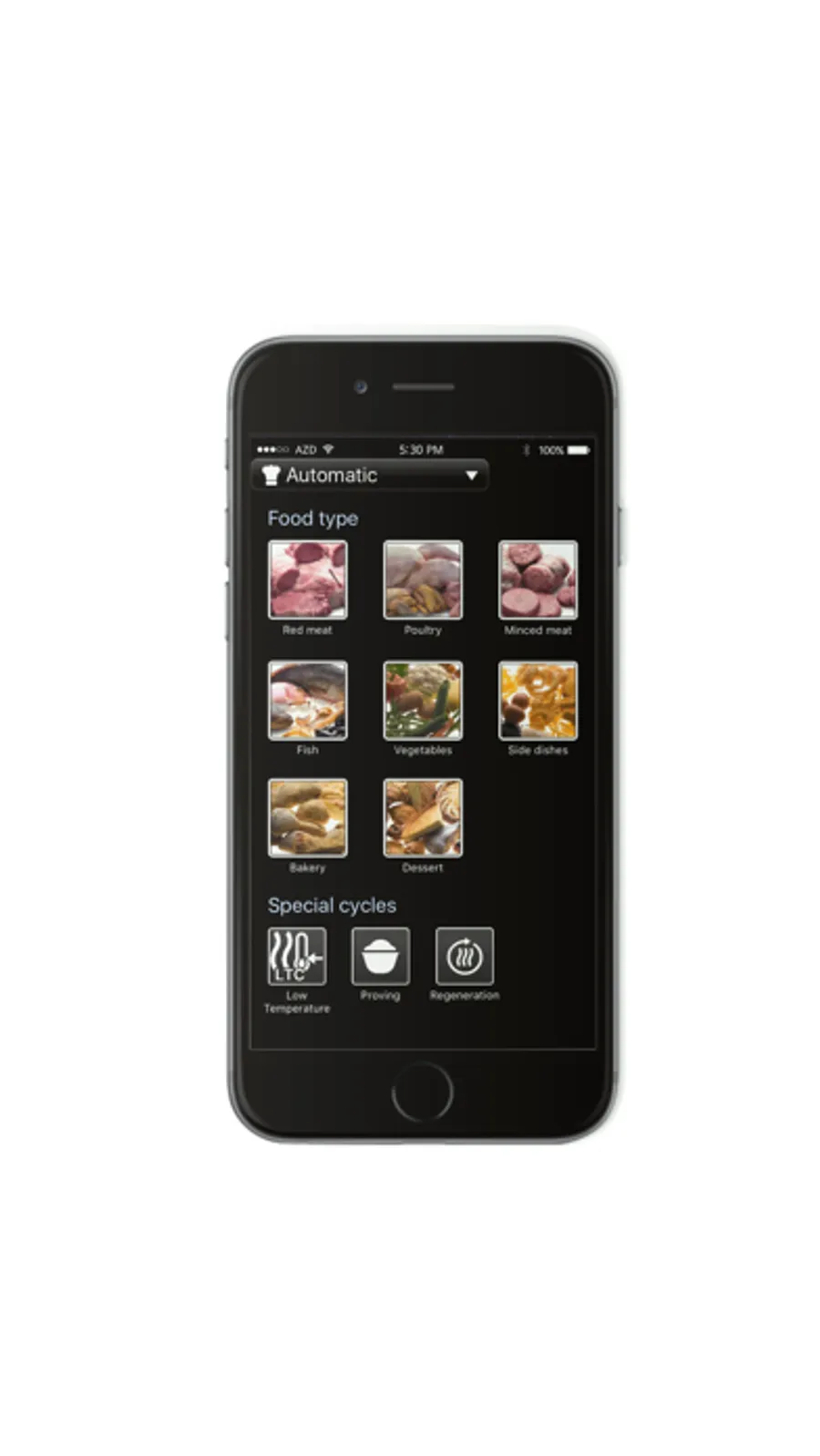 The Touchline App does not include all the functions present in the Zanussi EasySteamPlus combi oven (ie. in the Automatic Mode only Poultry, Vegetables and Desserts are visible).