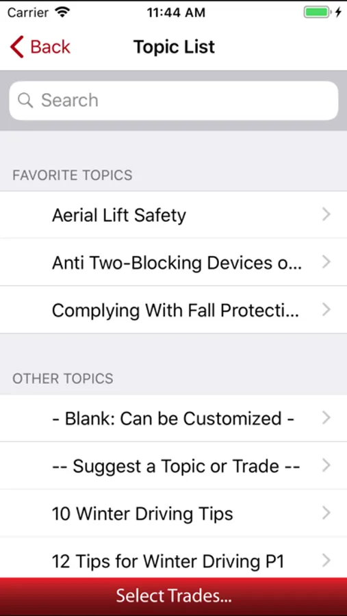 Safety Topics (also known as Toolbox Talks or Tailgate Talks) within the Safety Meeting App are ideal for all construction contractors and manufacturers including the following types of licensed and certified businesses and employees: CGP, CGB, CAPS, CGR, ABC, AGC, AGCNYS, AIA, BBB, NARI, OHSA, OSH, RMP, KSS, HBA, NAHB, MBA, BIA, BPI, HERS, EPA, ASA, NAWIC, IADC, MCA, MCAA, NRCA, IIPP, HVAC, IBS, OSH, BX, IREM, NARPM, NECA Safety, NPMA, NUCA, USGBC, DOT, UIG, DBA, LEED, AP, BD+C, DBIA, HACIA, NCHH, TCA, RMC, Cal/OSHA, JSA, HAZWOPER, NIOSH, OH&S