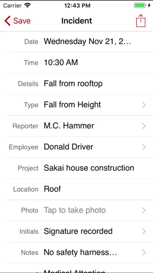 The Safety Meeting App is a complete solution for documenting OSHA-required safety meetings, incidents, accidents, near-misses, employee attendance, safety checklists, and much more right from your phone, tablet, or computer.