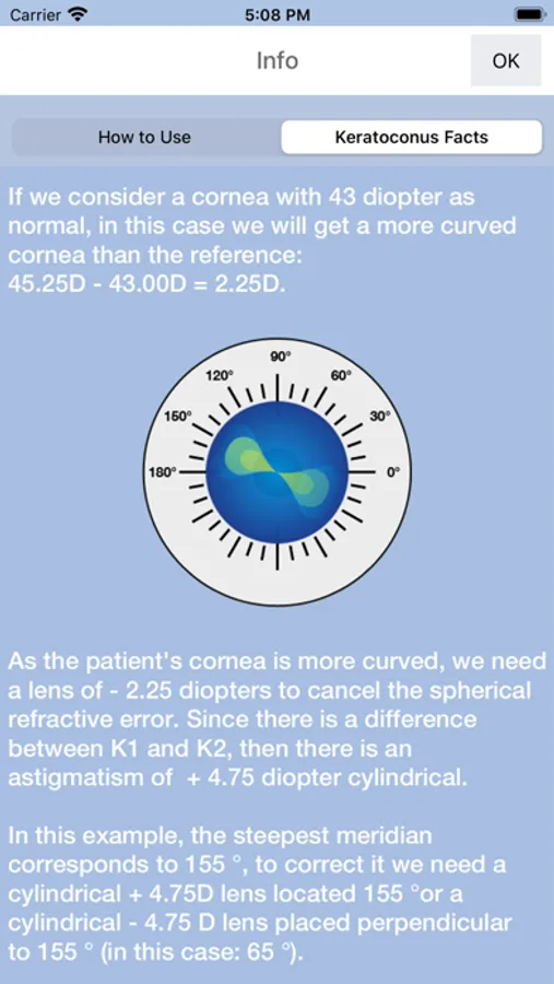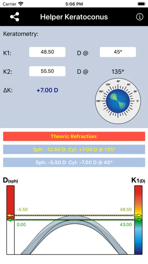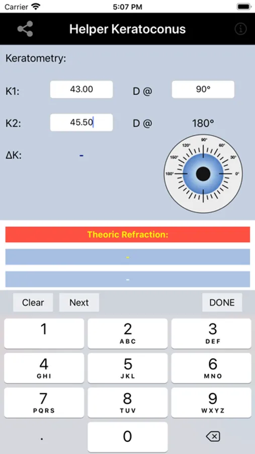 With the application "Helper Keratoconus" the ophthalmologist can calculate the patient's keratoconus refraction (theoretical) in a simple and quickly way.
