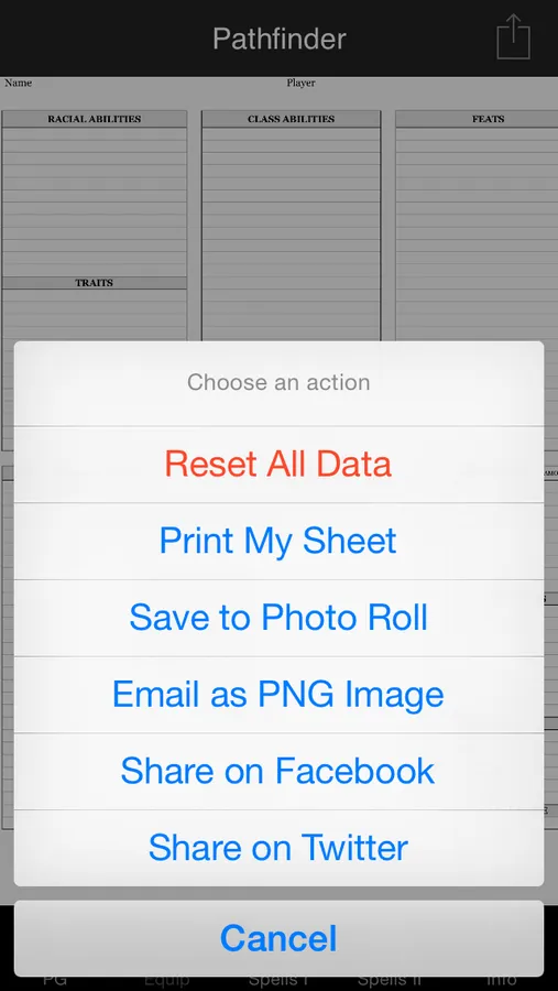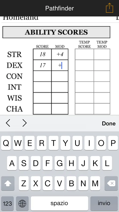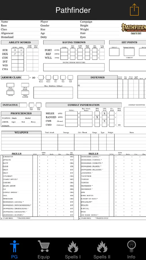 - DICE TABLE: Tap with 3 fingers on each sheet page to access the dice table area!