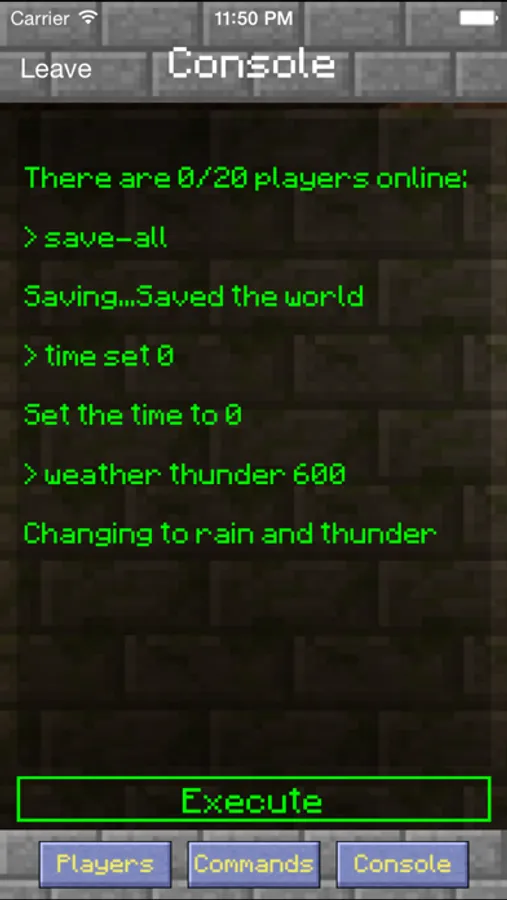 Mine Control taps in to Minecraft's RCON (remote control) server protocol to allow you to interact with your world. Mine Control uses a friendly user interface to provide access to essential server commands that make administrating your Minecraft servers so easy, you'll want to leave the app open while playing.