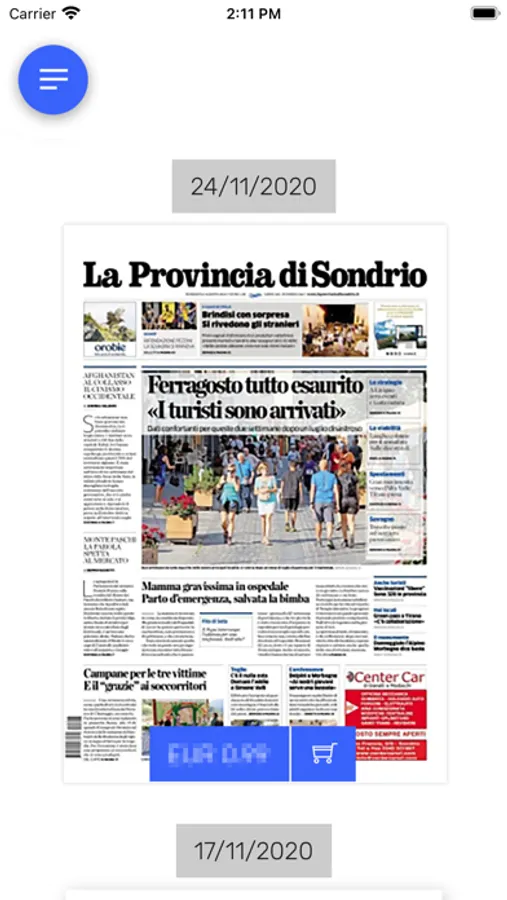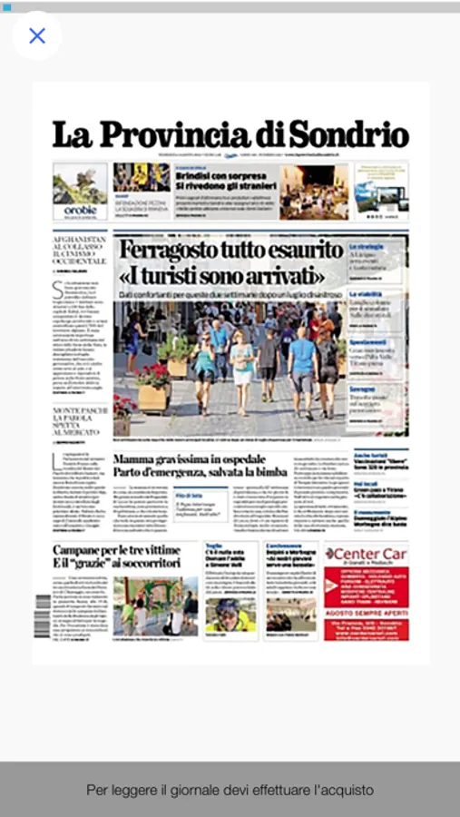 Puoi scegliere l’edizione del giorno, o un’edizione dell’archivio, e consultare gratuitamente la prima pagina o acquistare l'edizione completa. Sfogliando le pagine del quotidiano, ingrandendo i contenuti, ruotando il dispositivo, sarai libero di leggere in piena comodità e nella modalità preferita.