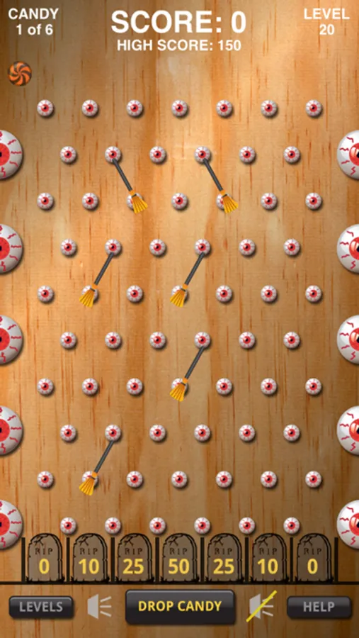 Halloween Candy Drop is a fun halloween themed game where you drop candy down a peg board. Halloween Candy Drop is fun, challenging, and addicting to play. Drag the candy at the top to where you want to release it and then click the "drop candy" button. The goal of the game is to get the highest score possible. You must get at least 150 points to unlock the next level. Some levels have objects that can effect the candy. It is easy to play but hard to master.