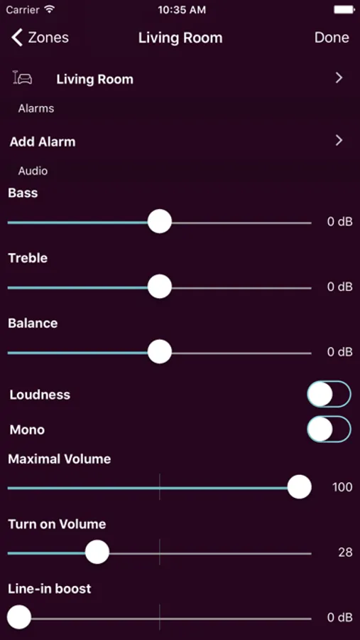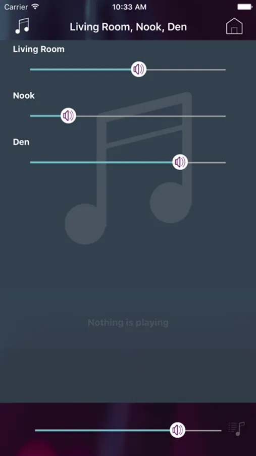 • Complete control of all audio zones and functions including, power, volume, playlists, pause, next, and mute
