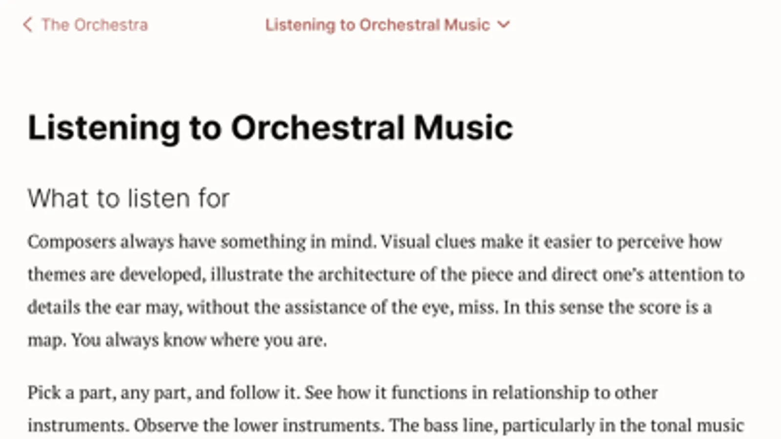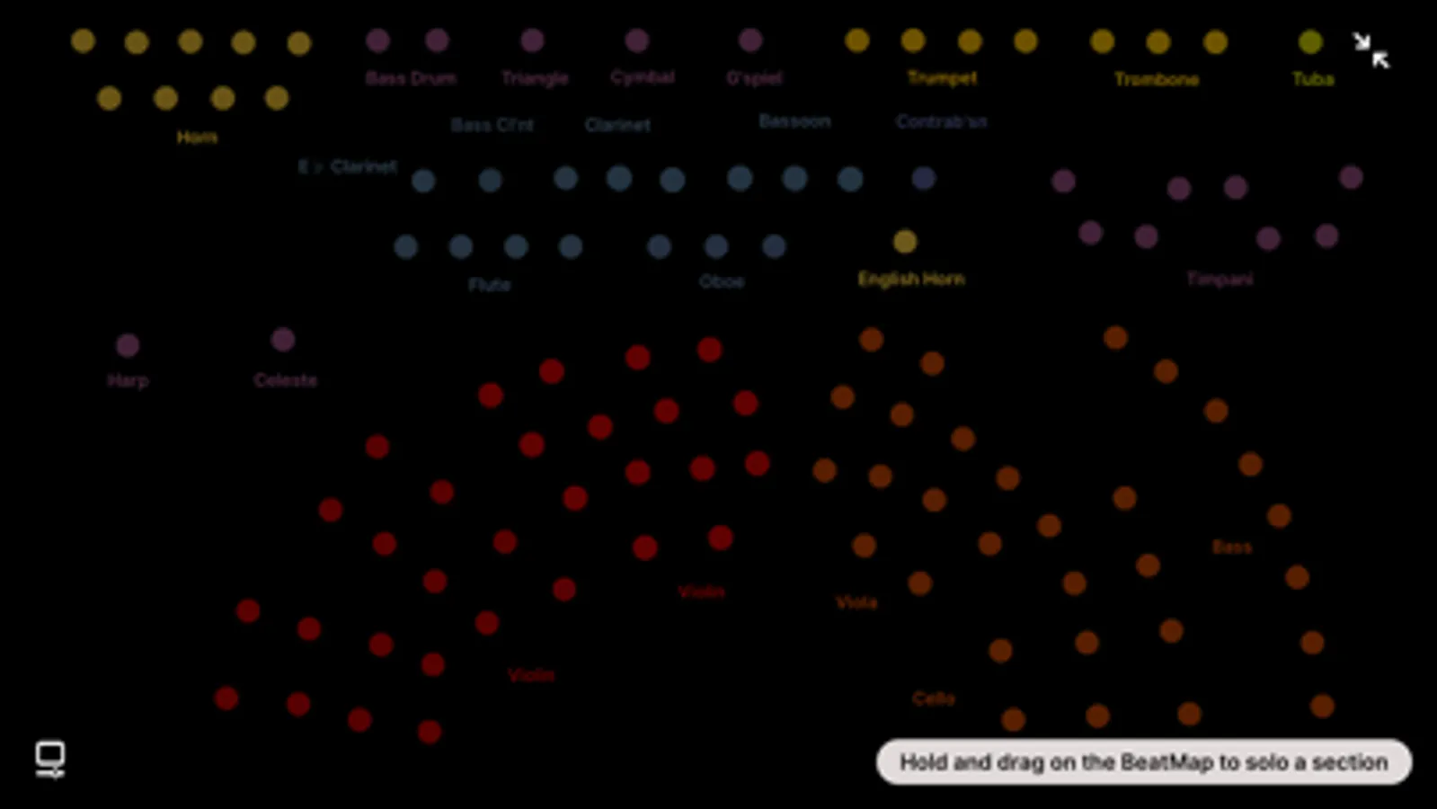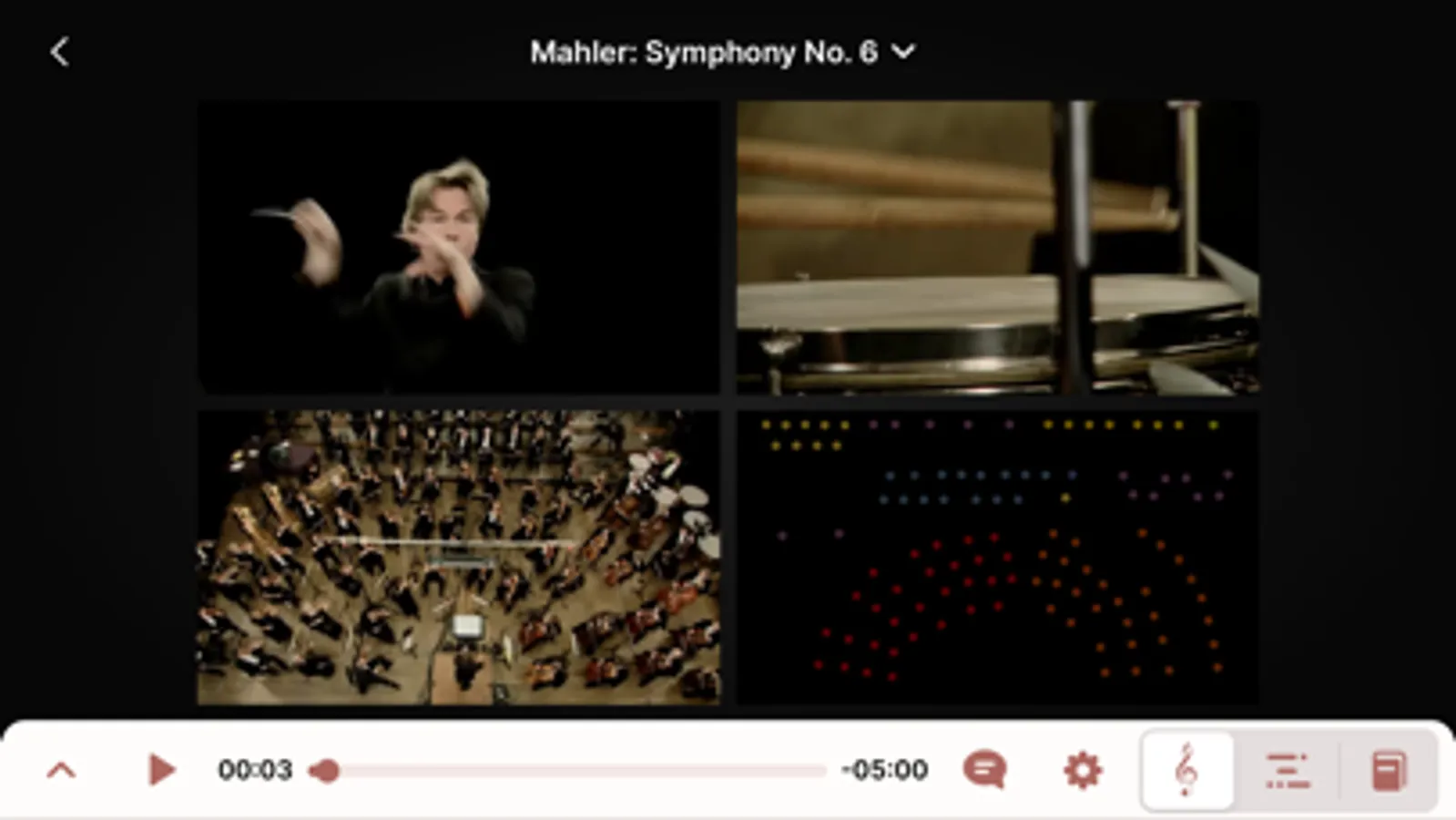 • Discover the BeatMap: This groundbreaking visualization of the performances shows different sections of the orchestra pulse in time with the music, helping you understand the complexity of each piece. Hold down your finger to hear different sections of the orchestra in isolation.