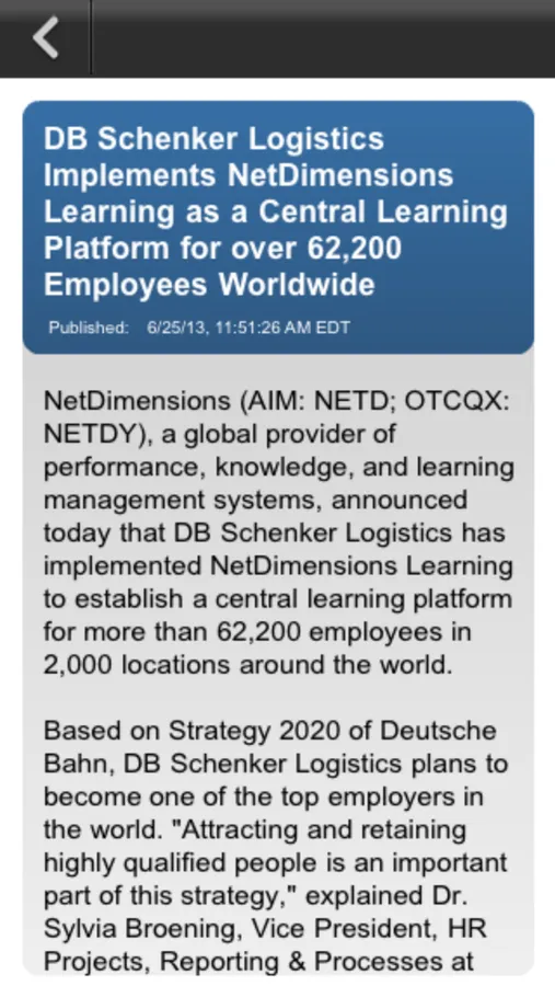 NetDimensions Slate is an application designed specifically for tablets, and now phones, to enable mobile learning and on-the-job performance support based on the NetDimensions Talent Suite. NetDimensions Talent Suite is a state-of-the-art Learning & Talent Management System for enterprises that provides an innovative, yet practical, approach to personalized learning and ongoing talent development.