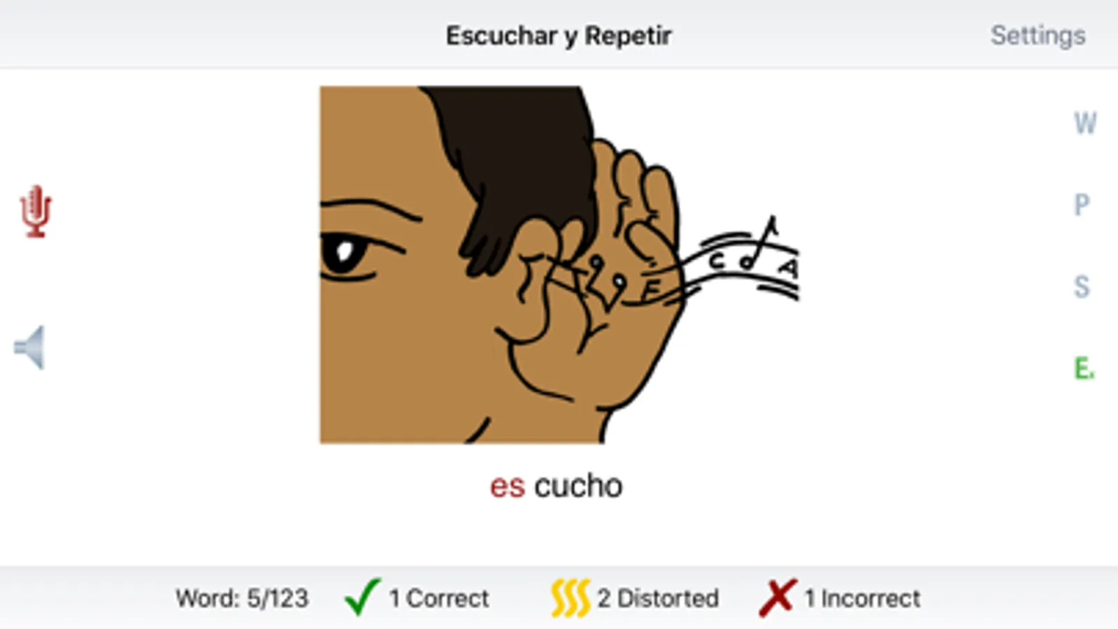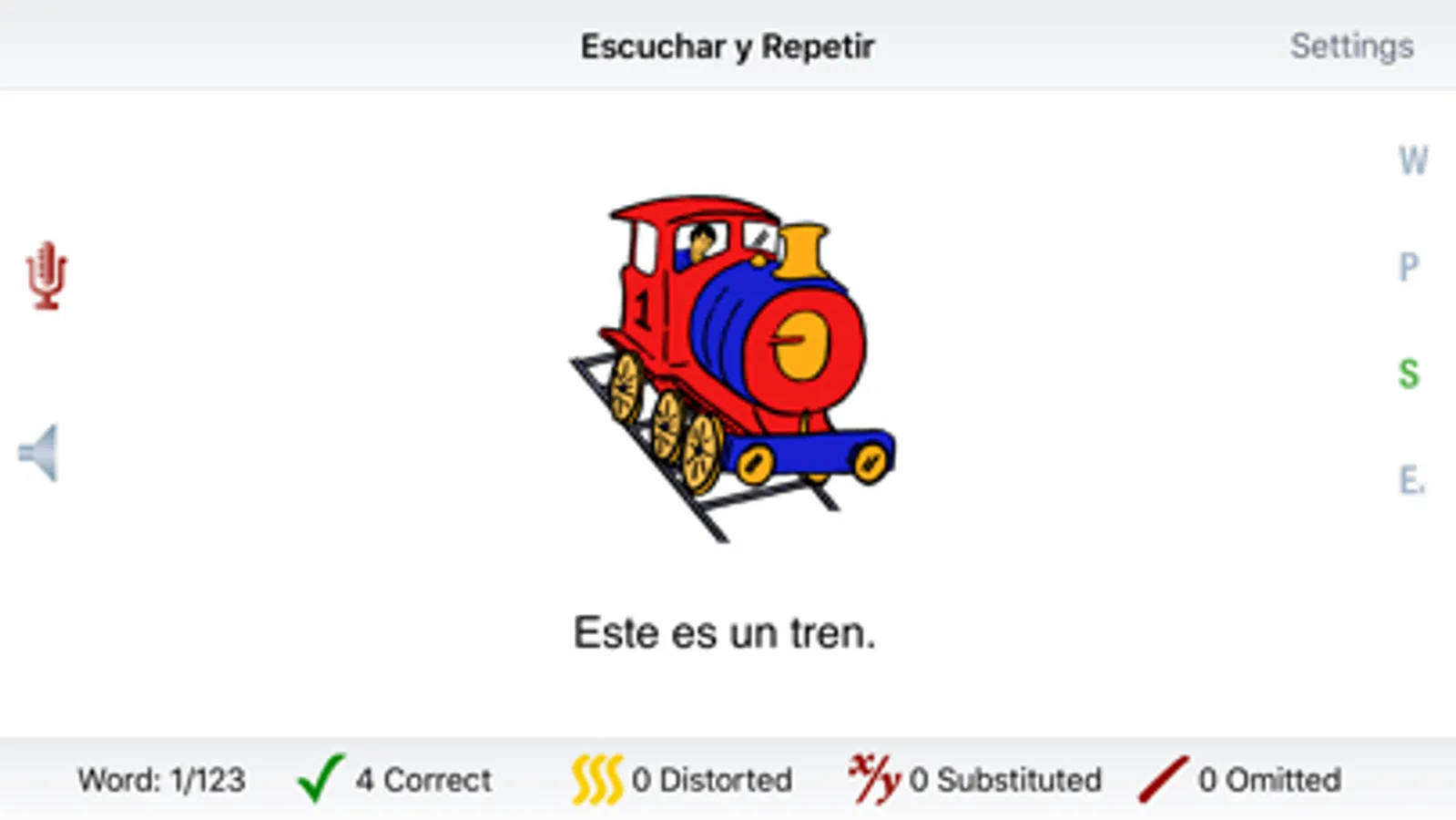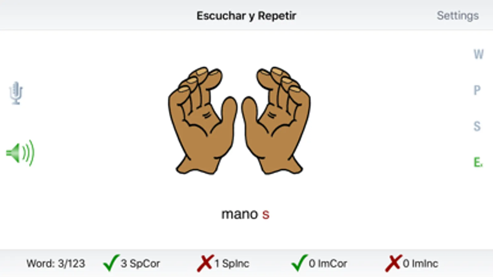 This app uses a phonological approach to remediating speech that is adapted from the ideas of Hodson and Paden and based on the unique features of the Spanish Phonological System. The program focuses on target patterns rather than target phonemes. One pattern is targeted for a limited time—two to four weeks—then the next pattern is targeted. Hodson and Paden called this method of introducing patterns a “cycle”. Patterns include: Consonant Sequences, Liquid Singletons, Postvocalic Consonant Singletons, Prevocalic Consonant Singletons. Within these patterns, specific phonemes are targeted. Target sounds and sentences are recorded by a bilingual Speech-Language Pathologist.