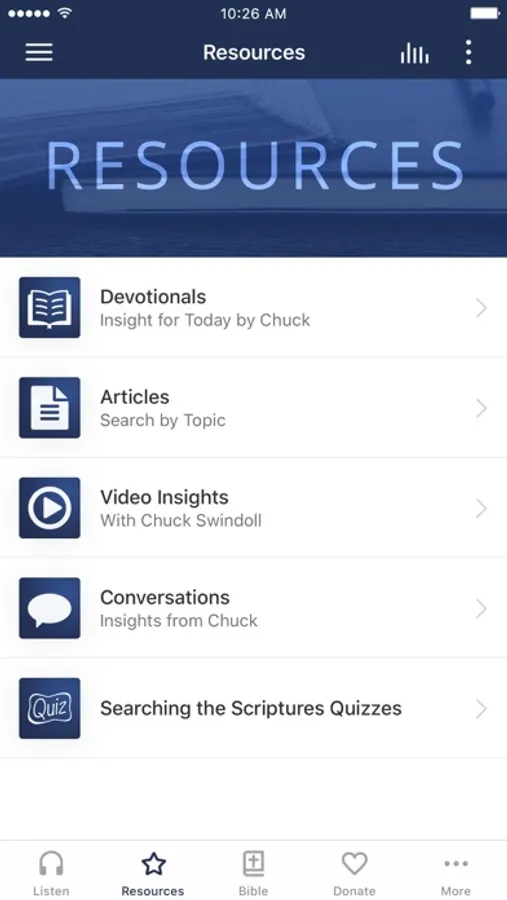 With the Insight for Living app, you can easily listen to Chuck Swindoll’s current broadcast message as well as other recent, popular series. You can also view short, engaging videos of Chuck sharing nuggets of wisdom and humor. Like to read? You’ll find thought-provoking articles on a variety of subjects such as the Bible, parenting, the end times, special needs, and much more.