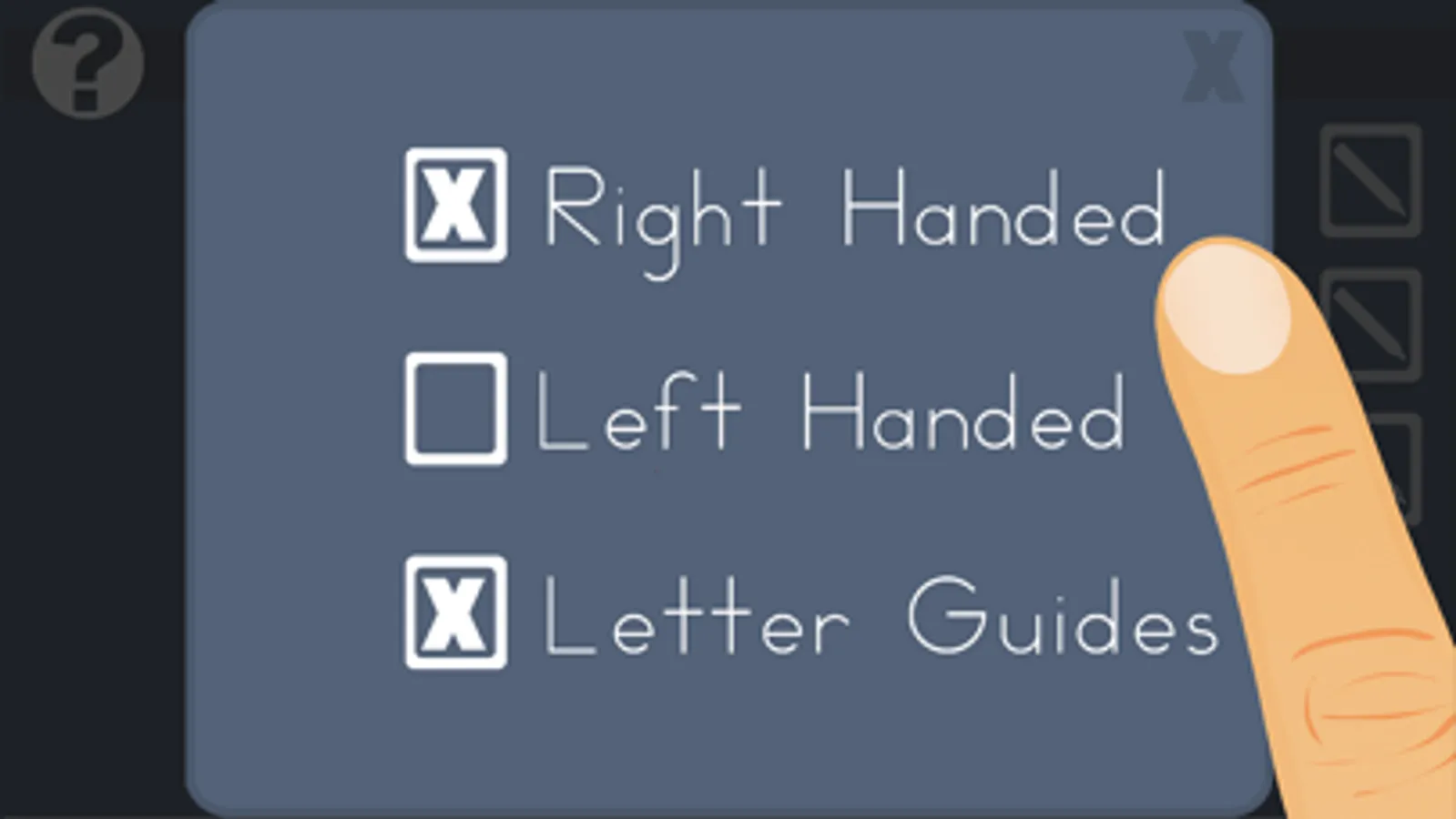 Once your child has traced their name or the word on the screen, you can hide the guide letters and see how they did. As they get more advanced, you can switch off the letter guides and just show the letter itself.