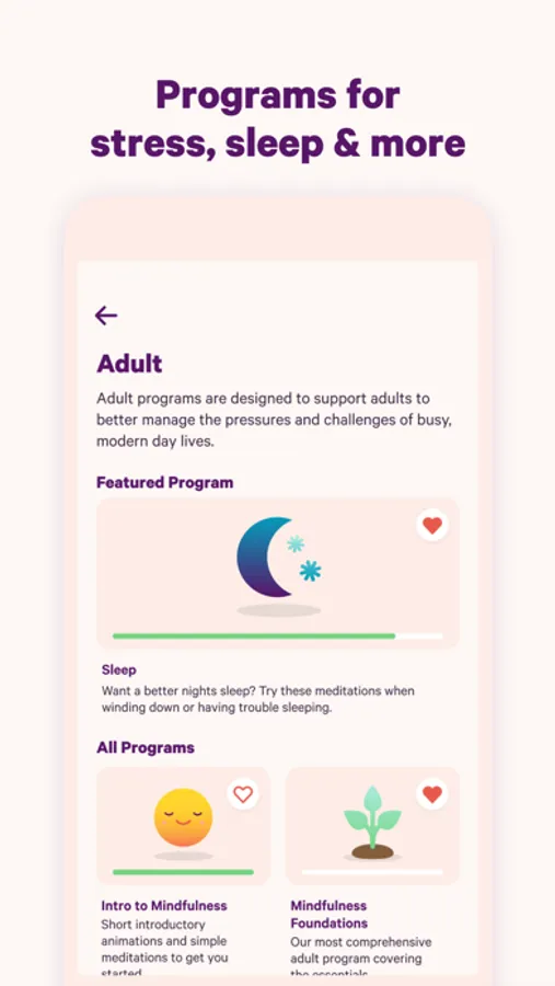 * Content and programs covering sleep, calm, relationships, stress, mindful eating, and much more