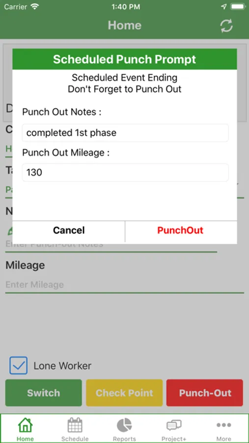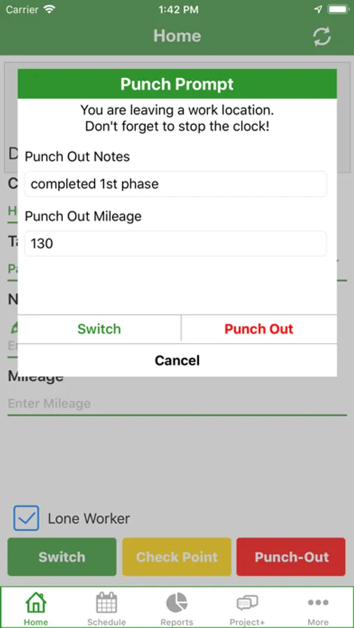 Geofence Punch Prompt alerts employees to Punch when they arrive and depart jobsites.