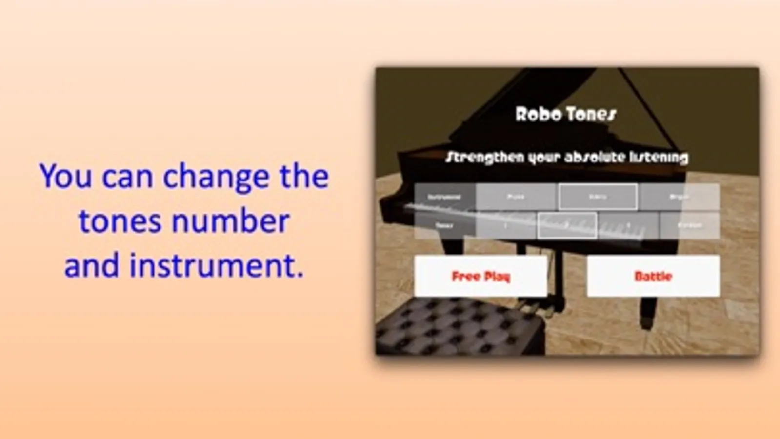 RoboTone is an application to strengthen absolute listening skill for your kids, especially grade school students.