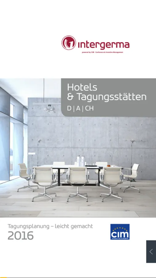 Additionally, the intergerma handbook on hotels and meeting venues in Germany, Austria and Switzerland - Hotels & Tagungsstätten D-A-CH - is published once a year with a print run of 41,000 copies. The guide lists over 1,000 hotels and conference venues and provides meeting organisers with information at a glance. Together with CIM, the manual offers a complete package for planning and organising meetings and events.