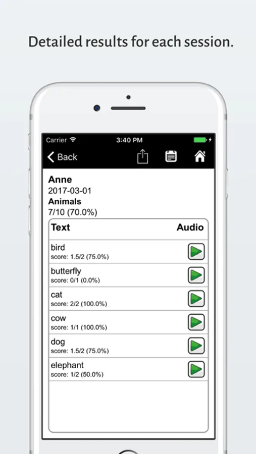 Improve speech and language skills with Speech Cards, a flashcards app for people of all ages. Each card shows customizable text and a picture. Tap on the text or picture to hear an audio recording. Use the microphone to practice speaking and then listen to get immediate feedback. Track the progress of your students by using the integrated scoring and reporting system. Create and share cards with your friends and colleagues.