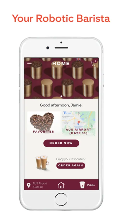 Order remotely from the app or at the BaristaBot and customize your drink exactly the way you want it. Get a text when your order is ready, grab your drink, and you're on your way. BaristaBot app users automatically collect loyalty points towards free drinks with each purchase or when inviting friends and family to join the experience.