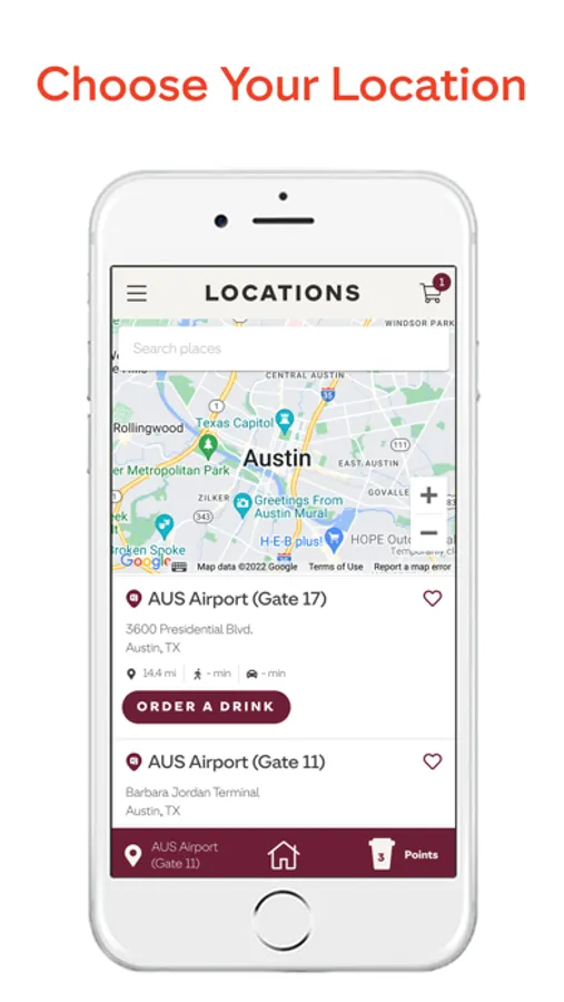 • Select from one of our many BaristaBot locations in airports, corporate campuses, grocery stores and more