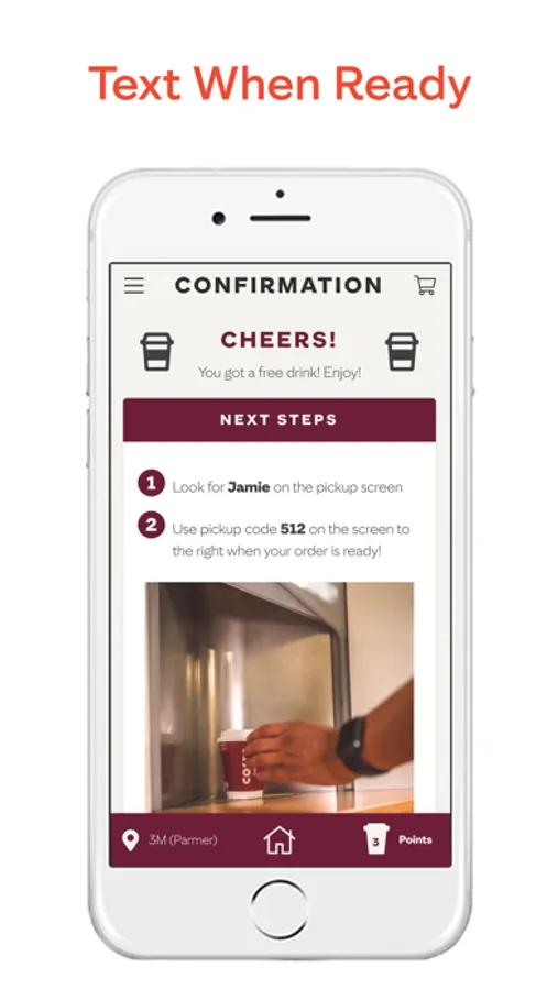 • We'll text you when your drink is complete, grab it from the BaristaBot, and you're on your way