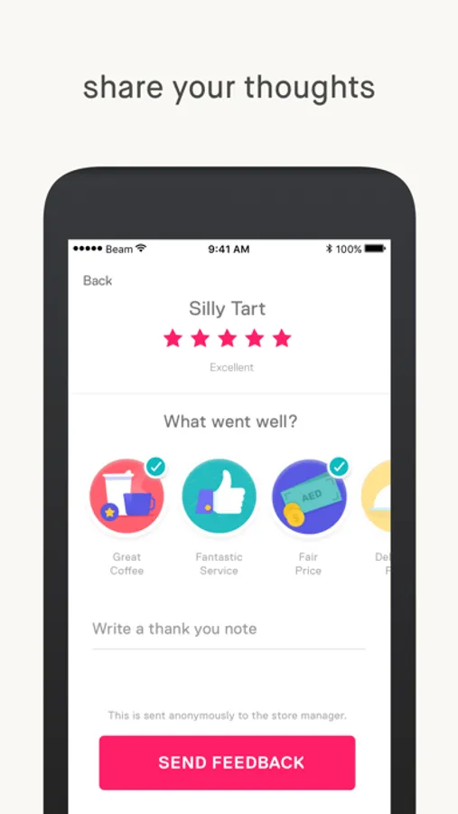 Beam is an innovative payments and marketing app and platform built for the 21st century. Beam allows users to access personalised offers from stores and earn rewards in dollars! For merchants, we’ve created a platform that turns payments into conversations; Beam allows merchants to create campaigns for specific user profiles, allowing merchants to match their offers with the right customer. Customers save money, businesses profit, and waste is a thing of the past.