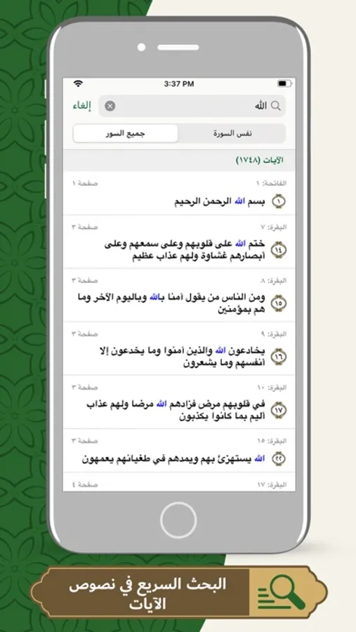 - البحث الفوري في القرآن الكريم وكتب الحديث والمتون