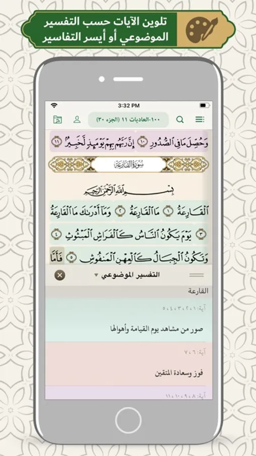- إمكانية كتابة الملاحظات النصية على الآيات