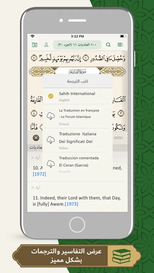 - قراءة تفسير وترحمة معاني القرآن بعدة لغات