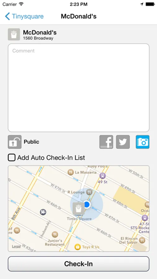 Tinysquare is a simple Swarm (foursquare) client to check in easy.