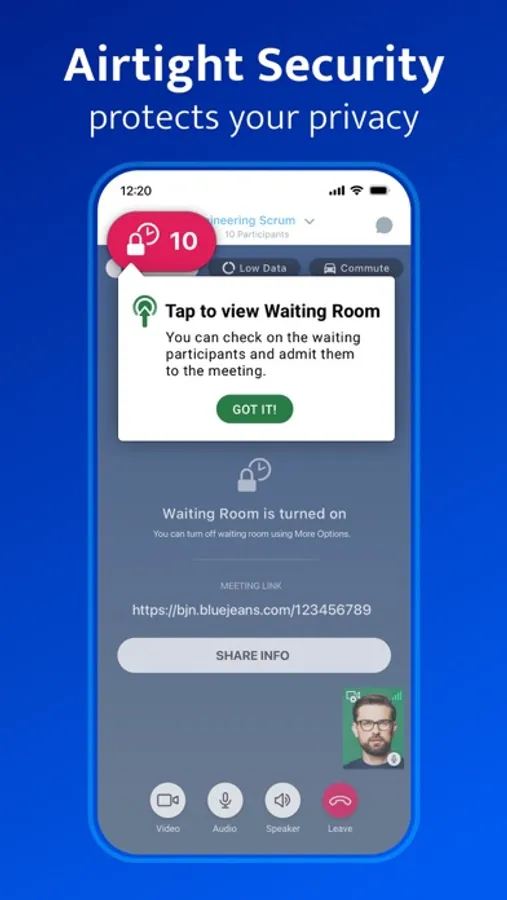 BlueJeans delivers a premium video conferencing experience that is optimized for the mobile workforce. With amazing features, like Dolby Voice® audio, BlueJeans helps make every meeting more productive regardless of where the participants are located.