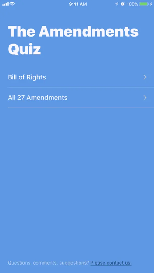 Perfect for studying for that upcoming Constitution test or just to brush up on the Amendments. All 27 Amendments are featured in this app plus an exclusive Bill of Rights quiz for the first 10 Amendments.