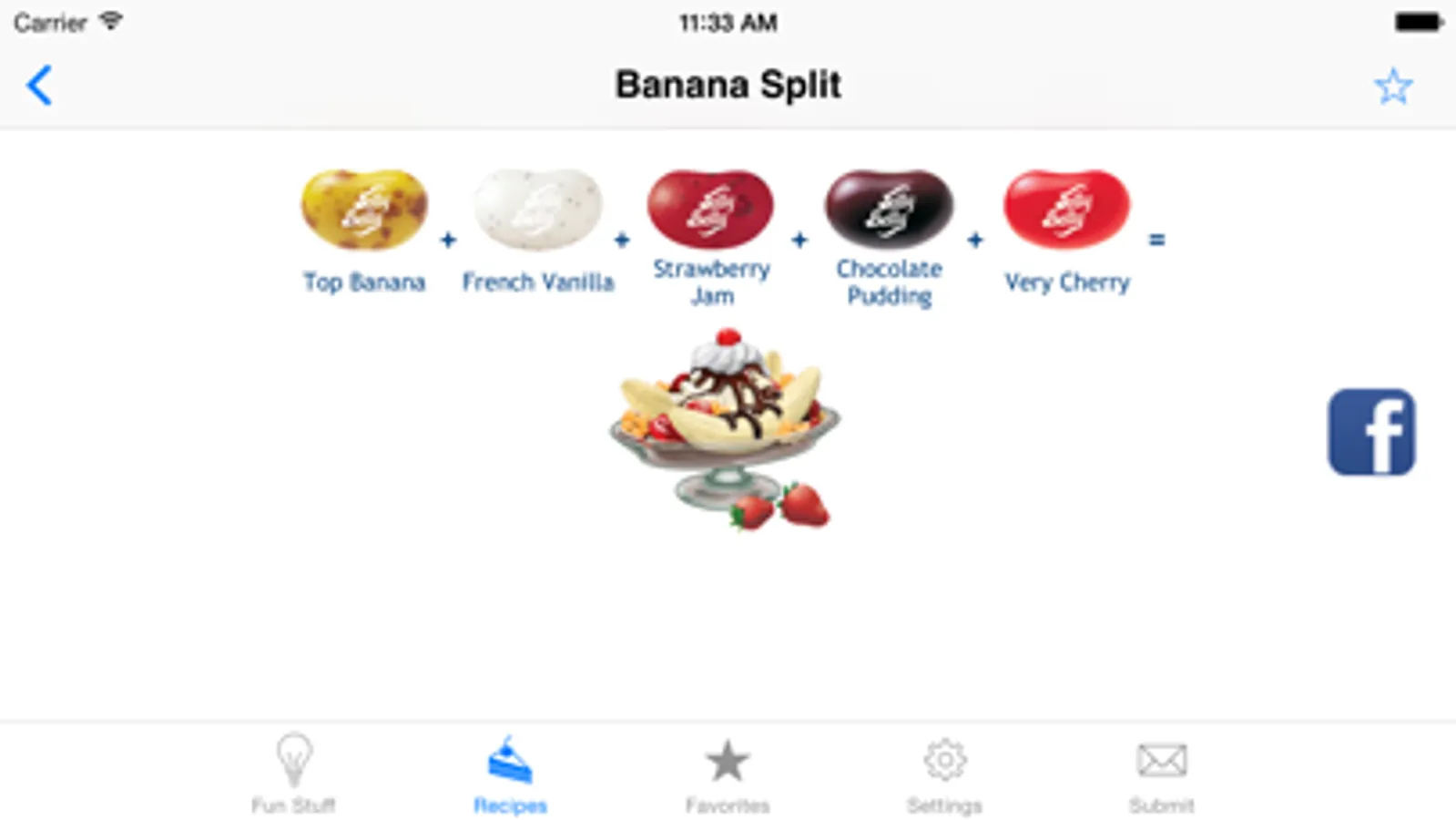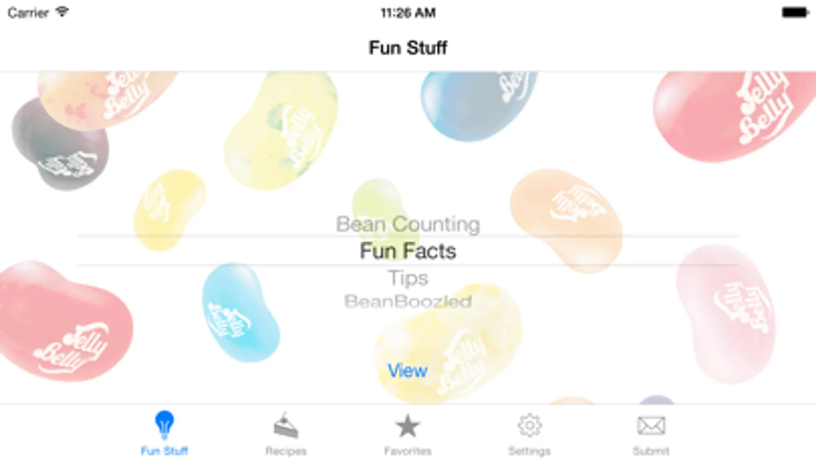 View interesting facts and other Jelly Belly info in the “Fun Stuff” tab.