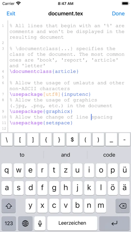 VerbTeX Pro is the secure LaTeX Editor for your iOS device. It allows you to create and manage LaTeX projects directly on your iOS device and generate a PDF by using Verbosus (Online LaTeX Editor).