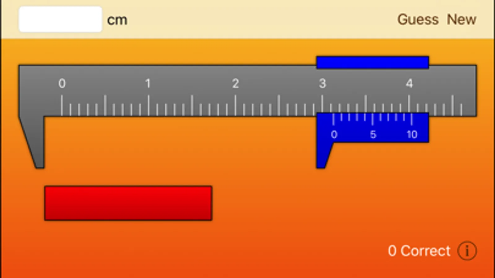 Ever wanted to practice reading a vernier caliper but didn't have a set? No worries, now you can practice on your iPhone using this free and easy app. Just slide your finger across to grip the red object and take your reading. Enter your guess and press "Guess" to see if you got it right.