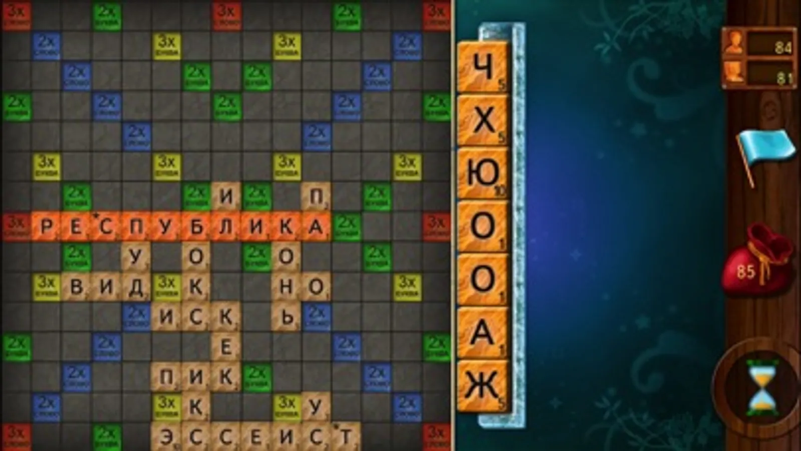 Знакомая всем с детства, увлекательнейшая игра "Эрудит". Оффлайн версия, игра с "компьютером".
