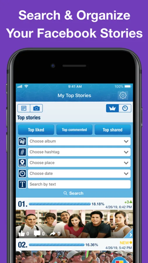 • MYTOPSTORIES: browse your best stories from Facebook, tracking their movements in the chart.