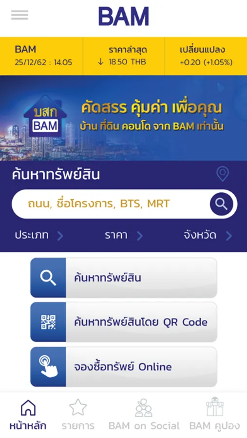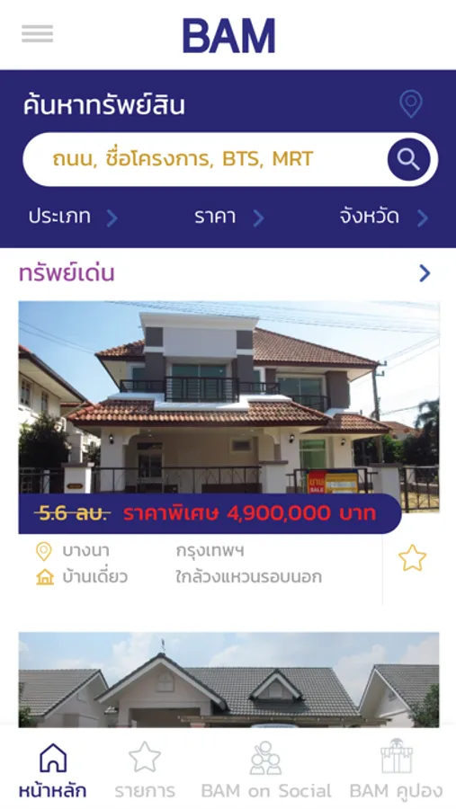 BAM เป็นโปรแกรมช่วยการค้นหาอสังหาริมทรัพย์มือสอง บ้านพร้อมอยู่ ที่ดินพร้อมใช้ประโยชน์ทุกที่