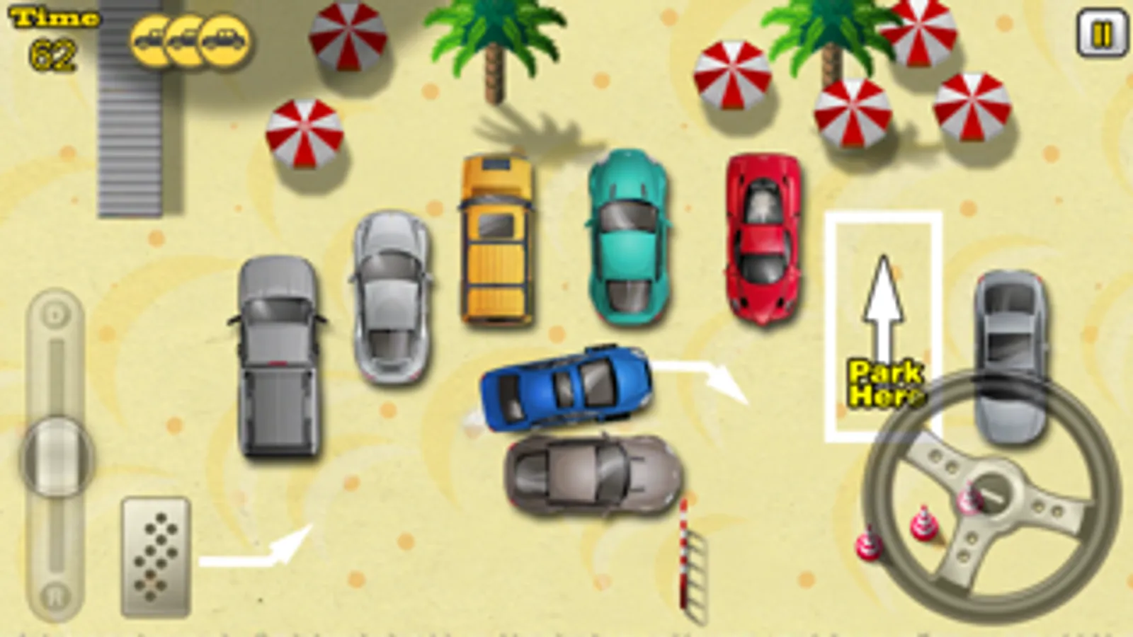 This is a leisure game that simulates real parking. Use your accomplished driving skills to park at specific locations as quick as possible, while evade passers-by, vehicles and barriers in the way.