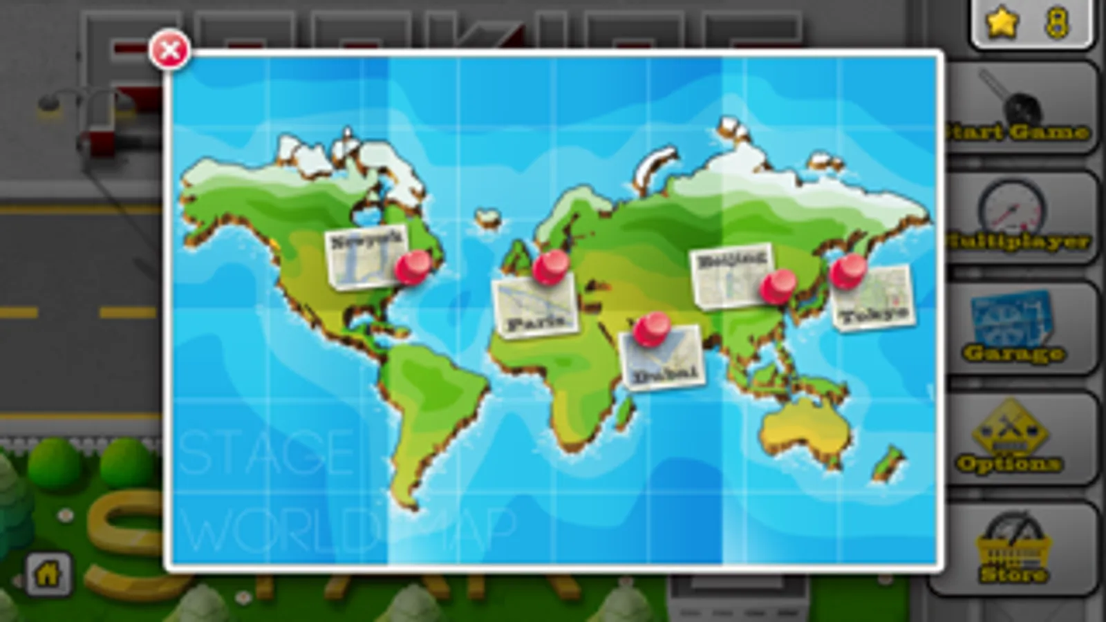 With bonus for passing a level, you can update your vehicle in power, color and performance.