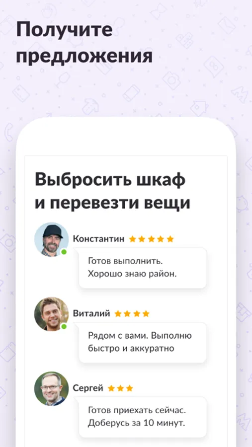 Создание задания занимает менее минуты, а уже через 5-10 минут вы получите предложения от желающих вам помочь и сможете выбрать лучшего исполнителя по цене, рейтингу и отзывам.