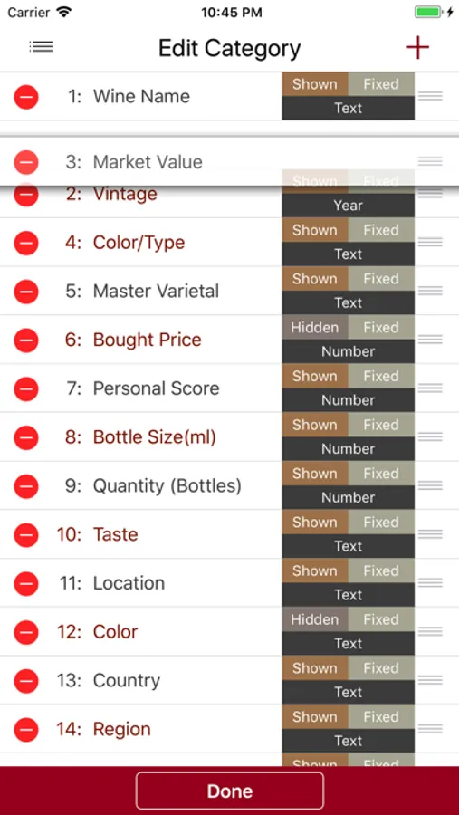 -In any category there is a break down of the wines according to the values in the category. (Eg. "current market value" will break down the wines according to the prices).